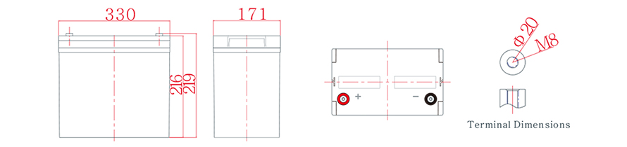 Dimensão: 330 (L) x 171 (W) x 216 (H) x 219 (TH) Unidade: mm
