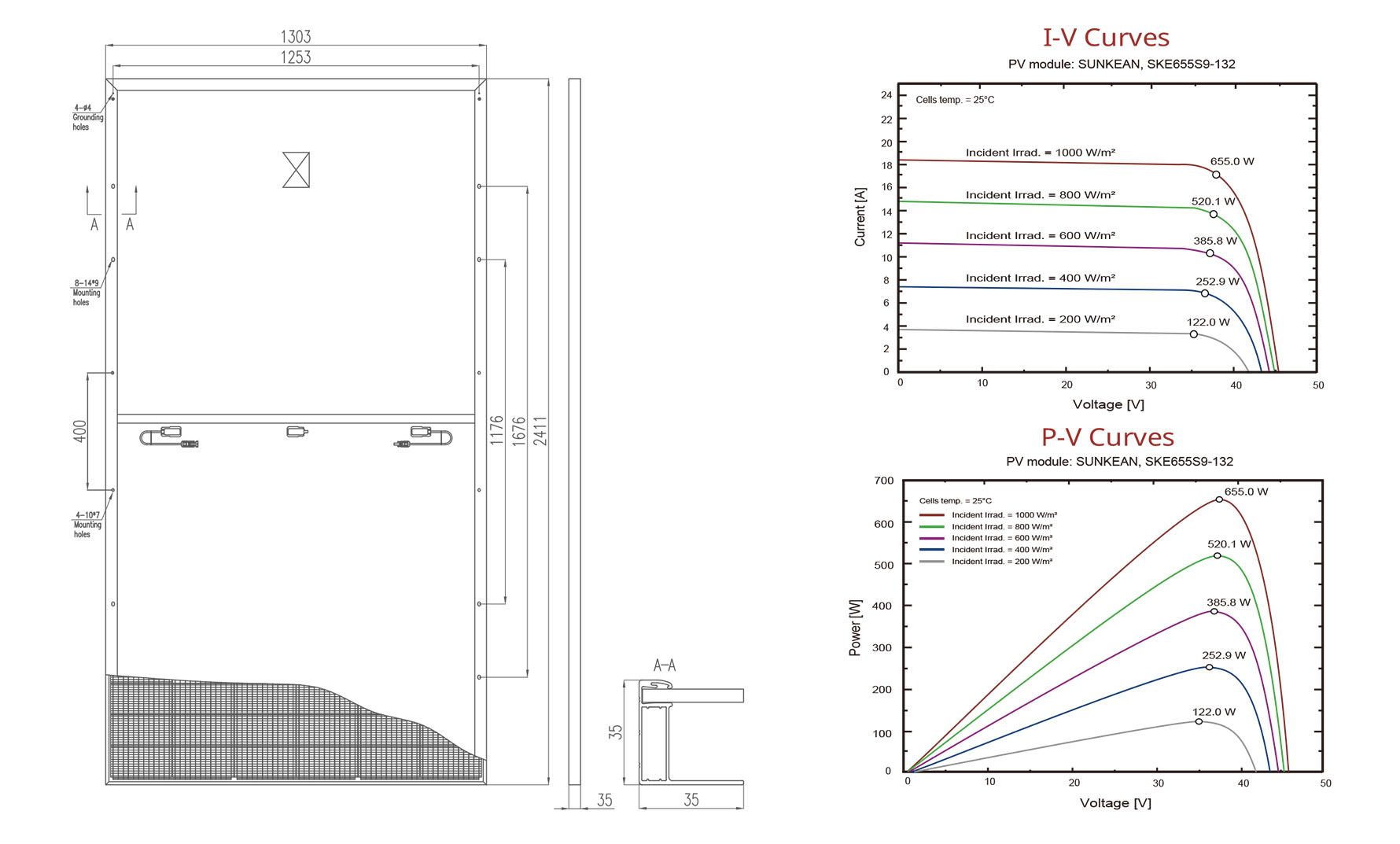 A eficiência de conversão do módulo de 210 mm e 665 W pode chegar a 21.2%,maior potência de saída,menor coeficiente de temperatura, reduzir efetivamente o custo BOS do sistema e melhorar o rendimento do projeto.