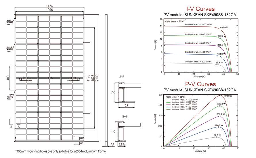 | potência de saída (wp) | 485 | 485 | 490 | 495 | 500 |