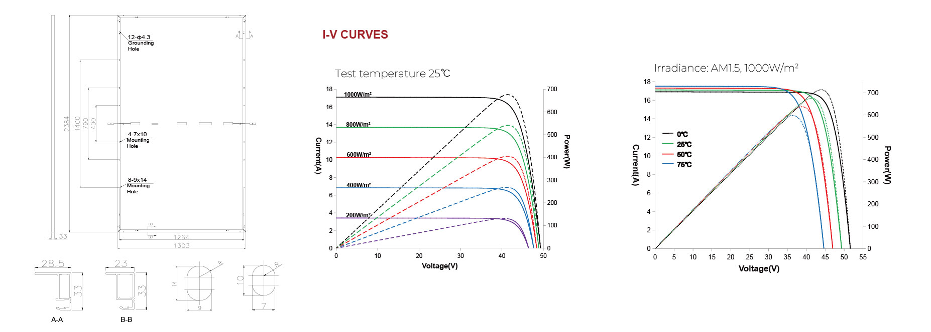 A degradação do primeiro ano destes painéis solares HJT de 680W-700W é de 1%; a degradação anual é de -0,25%. Os módulos HJT podem garantir uma taxa de geração de energia não inferior a 93% em 25 anos.