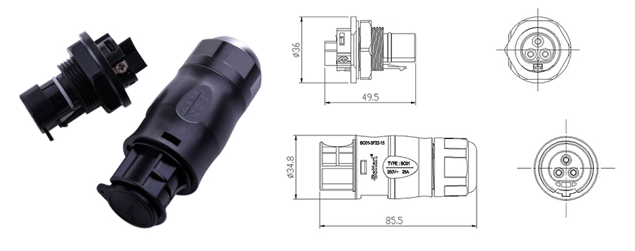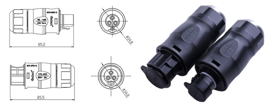 Nosso conectores fotovoltaicos CA são usados para a conexão de painéis, inversores ou caixas de junção. diferentes ferramentas são usadas para a instalação e remoção do parafuso, cada acoplador tem uma resistência excepcional à luz ultravioleta, névoa salina, alta temperatura, vibração e choque, além de apresentar um excelente desempenho de vedação. cada acoplador é TUV certificado para qualidade e confiabilidade.