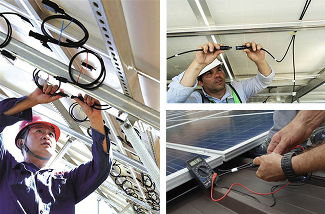 Os profissionais de cabeamento e comutação fotovoltaica frequentemente trabalham sob pressão de tempo e, como resultado, desejam cabos e componentes que possam instalar no local rapidamente e sem custos muito elevados. Para tais requisitos, existe o nosso serviço de montagem: aqui você obtém o cabo certo, no comprimento certo, com as propriedades e conexões certas. Obviamente na hora certa e no lugar certo.