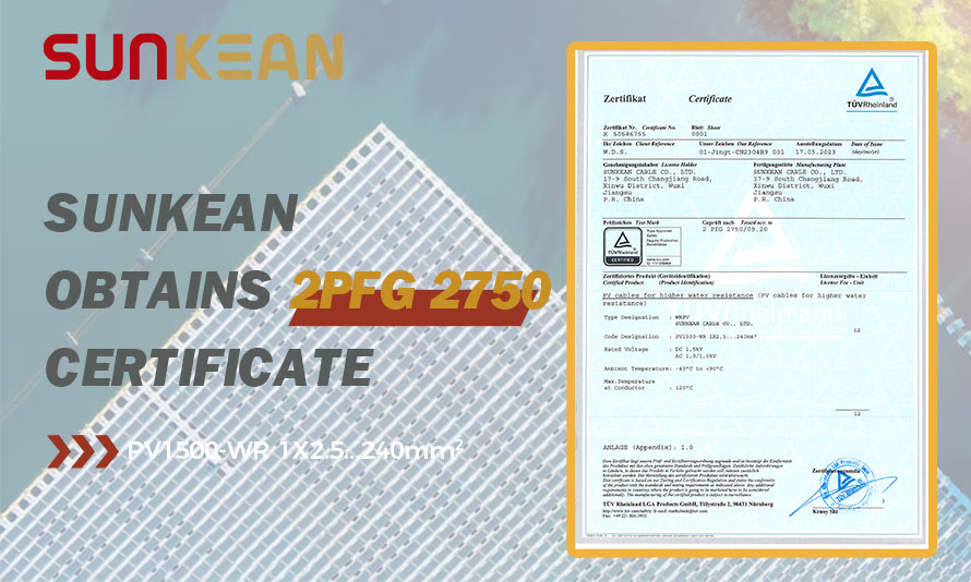 Em 24 de maio de 2023, na 16ª Conferência e Exposição Internacional de Energia Solar Fotovoltaica e Inteligente (SNEC), a TUV Rheinland emitiu a certificação padrão do cabo fotovoltaico flutuante 2 PfG 2750 para a SUNKEAN. A SUNKEAN está na vanguarda da indústria em P&D e fabricação de cabos solares flutuantes. Sempre esteve empenhada em ajudar no desenvolvimento da indústria fotovoltaica e na diversificação das aplicações fotovoltaicas, promovendo ativamente o processo de padronização da indústria.
