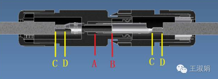 através da análise, verifica-se que as partes queimadas do conector existem principalmente na parte central do conector (ou seja, segmento A-B, denotado como rco) e na parte de crimpagem em ambas as extremidades (ou seja, segmento C-D, denotado como rcr).