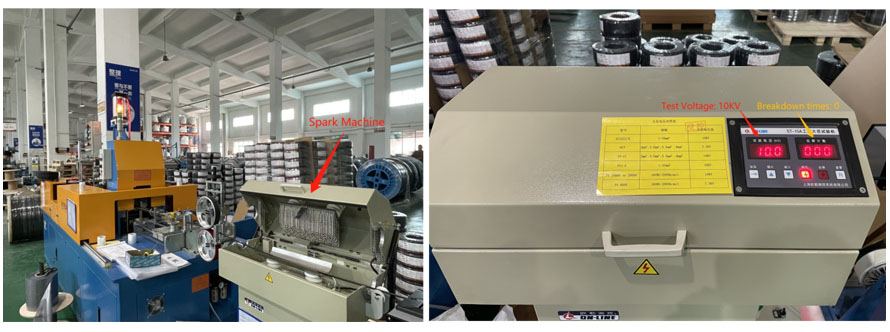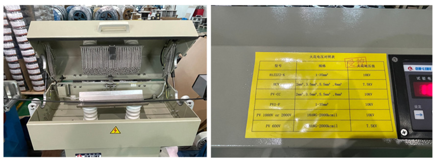 Para o modelo popular H1Z2Z2-K / 1~35mm2, a tensão de teste é de 10KV. Diferentes tensões de teste de faísca são aplicadas, determinadas pela área da seção transversal do condutor e material de isolamento, com a tensão apropriada especificada no padrão de cabo relevante.