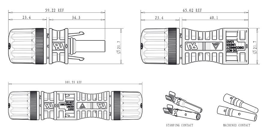 IEC 62852 & UL6703 TÜV / UL 1500V dc * 40A máx. ( 14AWG / 2,5 mm²) * 45A máx. ( 12AWG / 4,0 mm²) * 55A máx. ( 10AWG / 6,0 mm²) * 80A máx. ( 8AWG / 10,0 mm²) 0,25mΏ TYP temperatura de operação -40 ° C- + 85 ° C Grau de proteção IP68 acasalado & IP2X não acasalado estilo de contato estampagem formada / Usinado classe de chama UL94 V-0 classe de segurança modelo nº SKE-DA padrão tensão nominal corrente nominal contato de resistência ii