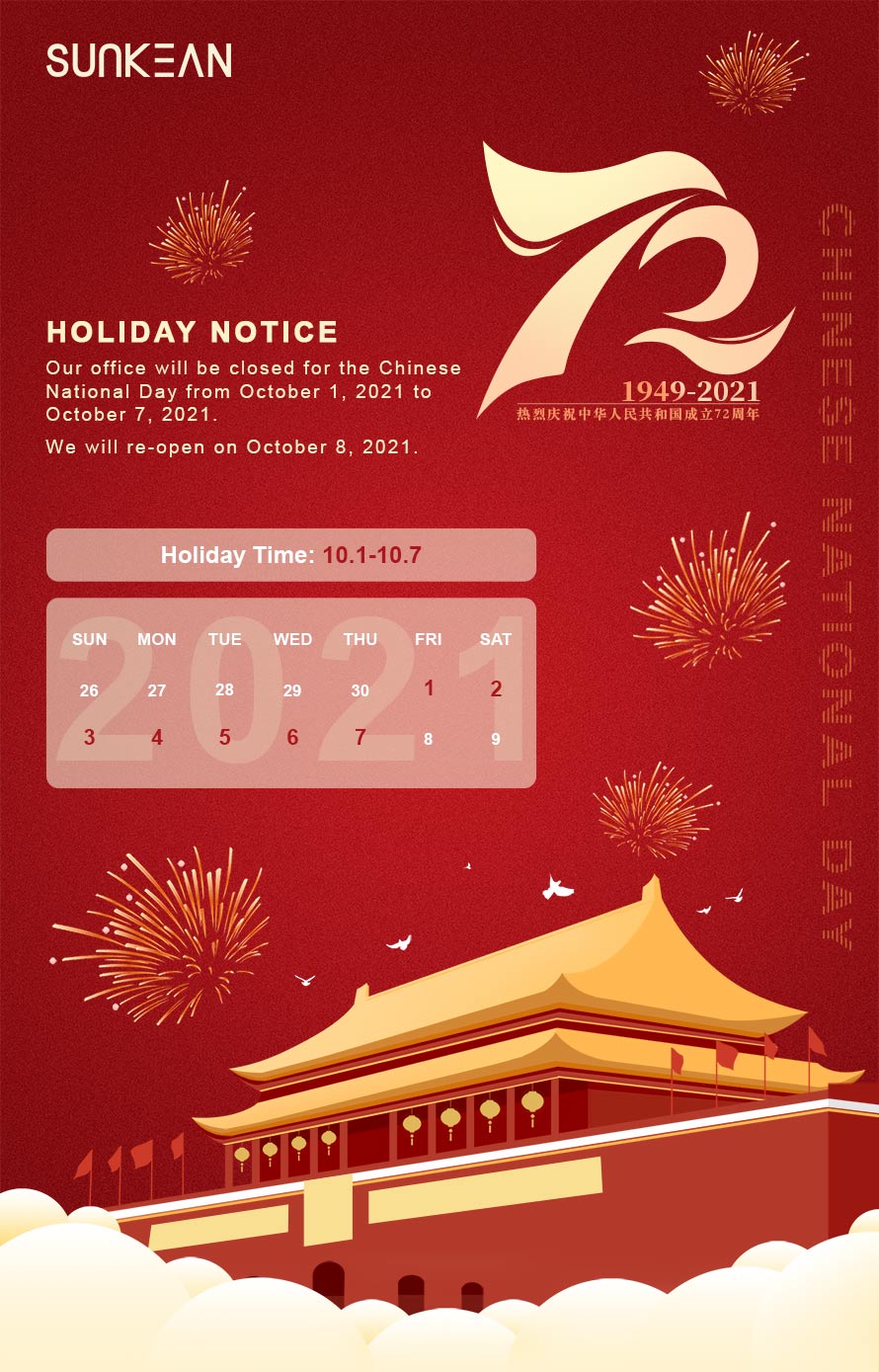 Na China, as pessoas vão comemorar o feriado nacional. E, claro, temos sete feriados de 1º de outubro a 7 de outubro. Durante esse período, nosso escritório estará fechado.