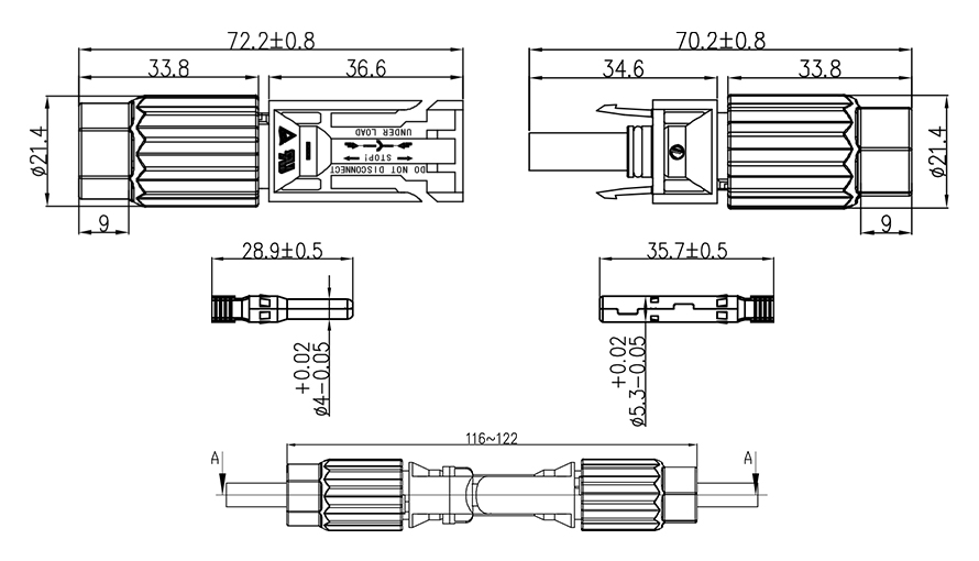 Aplicação : | cabo solar 4 mm² / 12 AWG, 6mm² / 10AWG |
