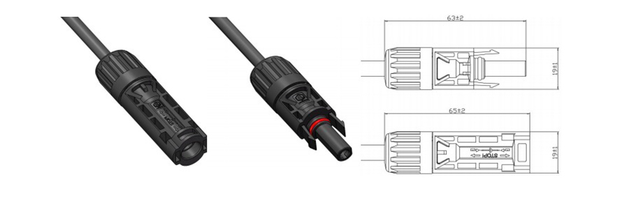 o Conector do painel solar pode ser adequado para fios solares de 4 mm2 / 12AWG. A vantagem é a conexão rápida e confiável, resistência aos raios ultravioleta e IP67 à prova d'água pode funcionar ao ar livre por 25 anos.